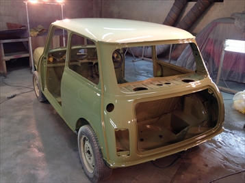 最終チェック、磨き、コーティングも終わり全ての作業が完了いたしました! 最初のBespokeですが、ユーザー様のお好みに合わせて(僕の(≧m≦))出来上がったと思います。 長い事お待たせしてしまいましたが、出来るだけの事はさせていただきました いつまでも可愛がってあげて下さい また一台 ウィローグリーン/O・E・W のお洒落なミニが街に増えました!嬉しいっス! 当時のカラーデータで調色しておりますので、この当時雰囲気がバッチリ出て可愛く仕上がっています!! い〜感じ〜!! |