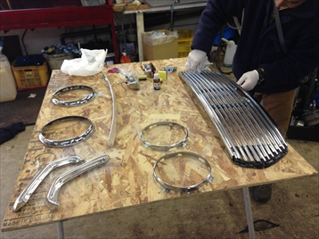 じゃーん! ここで、オーナーさん登場!! 遊び(監視)に来ると働く事になります 笑 新品に交換部品ですが、そのままですと変色、錆びにやられますので、はじめにモール用のコーティングをしておきます! 自分で 笑 |