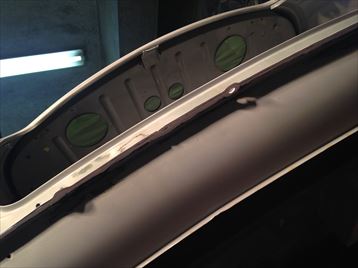 | ルーフ、Aピラーもこの様です 変なのが覗いてます、誰だ君は・・・ ウチの鈑金職人です(笑) |