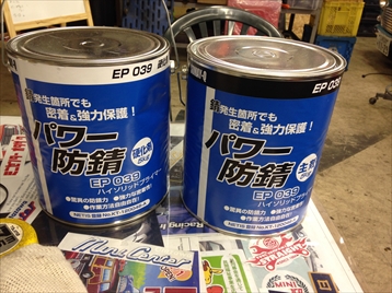 | 錆処理が終わった所や錆の出やすい部分にパワー防錆をペイント! |