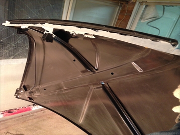 | フロントスクリーンパネルとウィングの継ぎ目 左は、本に掲載する写真を撮るのに先に剥いてしまいました 右もヤバそうです |
