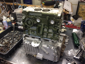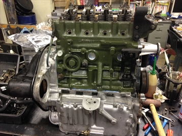 | エンジンブロックの組み付けに入ります | |