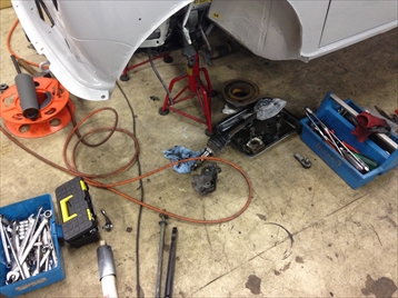 | 取りあえずエンジンは降ろします ATも不調で、エンジンもオイル喰っちゃってます キッチリ治します! |
