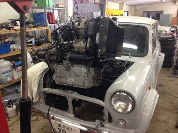 | エンジンブロックとATを組み付け | |