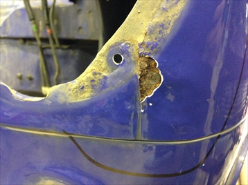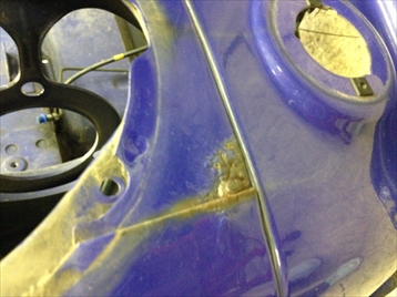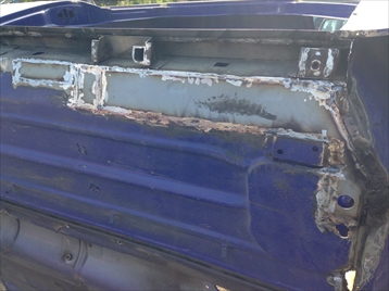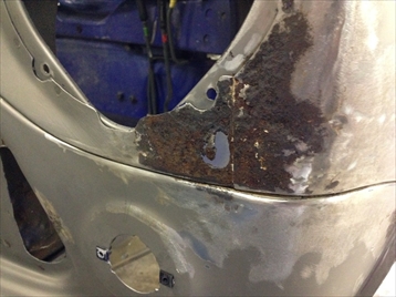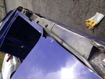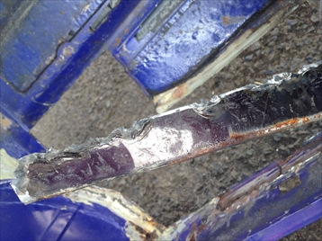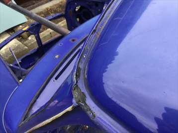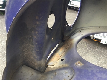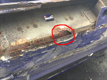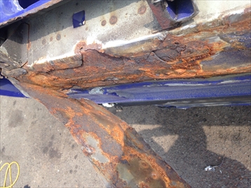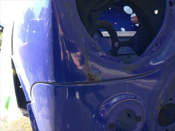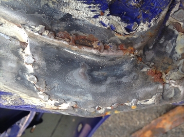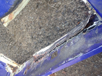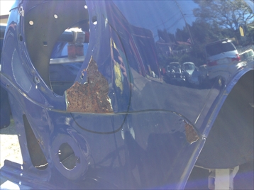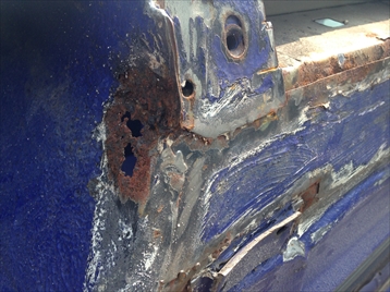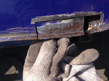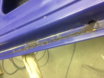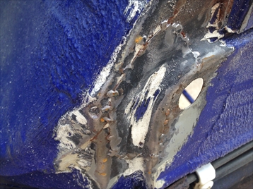被せて塞いだ部分をシーラーで埋めてありました! そのパネルを剥がせばこの通り!!煤S( ̄0 ̄;ノ な訳ですよ 補修した時は、外から見れば直っているのでしょうが、何年か経てばこの通り 余計に酷い事になります それを直すのはもっと大変です 始めからしっかり修理してくれるお店を選びましょう |