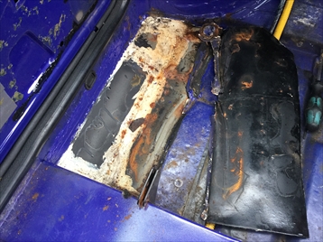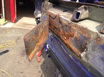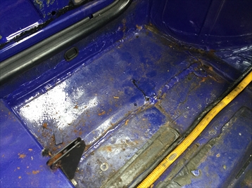 フロアーなどの錆が酷かった箇所の処理が完了しましたので、板金作業に入ります |