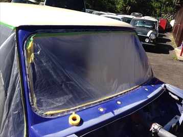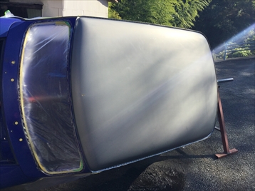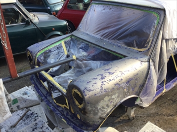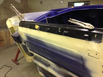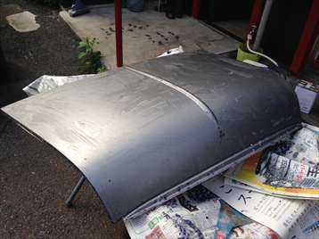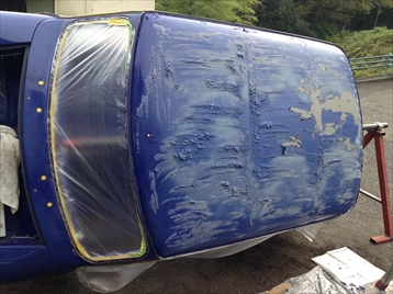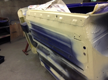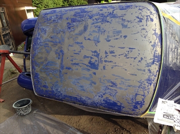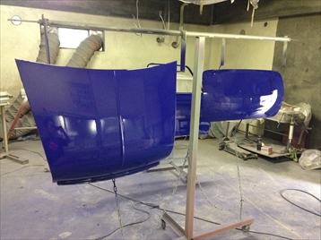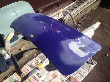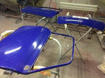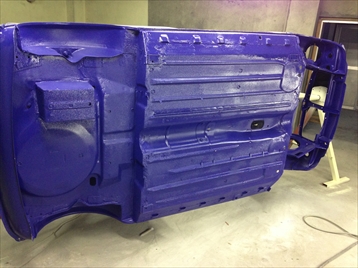 先に下地の終わった ボンネット、ブートリッド、ドアのペイント! もちろんPSブルー! |