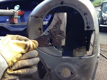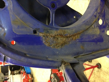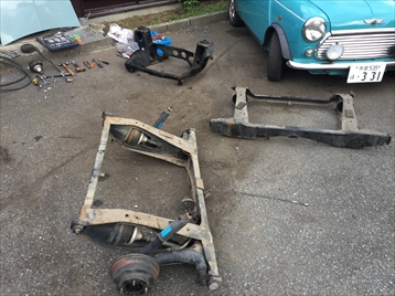 リヤのバンパーステー部分もしっかり錆を落としておきます |