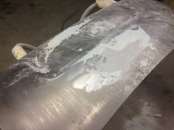 囲んだ部分 過去の補修で、パテに気泡がたっぷり入っちゃてました! ダメぢゃん! |