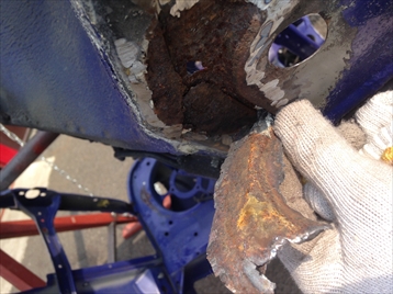 サイドシル 画像は左ですが、左右共に交換です あっ・あ・あ・あ・あっ 丸の中 錆びで穴あいてますよね〜 それを外から 鉄板貼り付けて塞いじゃってますよね〜 サイドシルの中は雨水の抜け道、建物のの雨樋の様な役割をしています もちろん室内に雨水 バンバン入っちゃいますよね〜 やったのだ〜れだ ( ´艸`) |