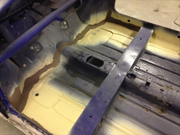 フロアーにはパワー防錆を塗布し、取り付けるサイドシルの裏側も防錆処理しています |