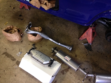 ダウンパイプ、キャタライザーは日本製で交換! マフラーも交換し排気廻りもバッチリです |