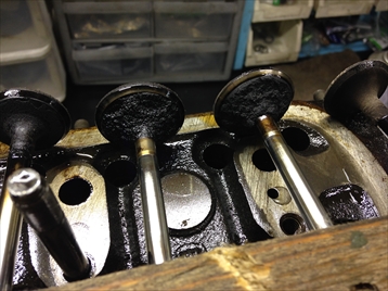 | 続いてヘッドのオーバーホール ん〜、いい感じでガ〜ッチリ、たぁ〜ぷり カーボンが積もってますねェ! オイルが入ってしまっていたのですね |