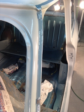 バルクヘッド、Xメンバー、ドアヒンジの取り付け部分もサビ処理ですね |