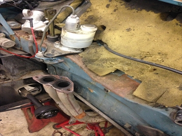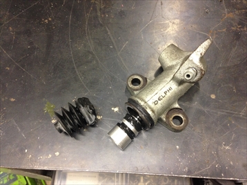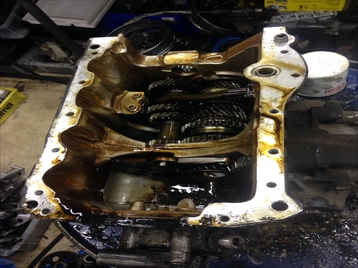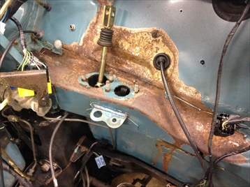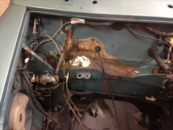 | バルクヘッドです クラッチのフリュードがかかったのでしょう、塗膜が剥がれガッチリ錆てしまっていました これでは直さない訳に行か無いですね |