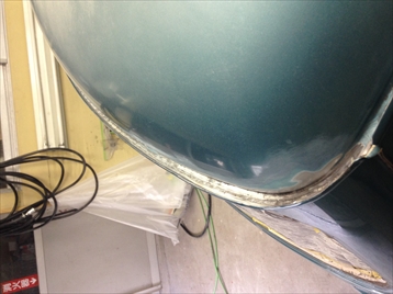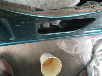 フロントバンパーのステー部分 ここも何でも無い様に見えても、一度シール剤を剥がしてサビ処理します |