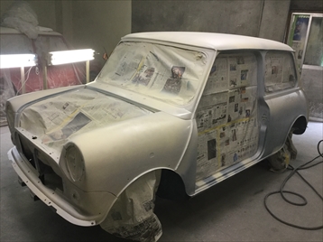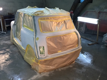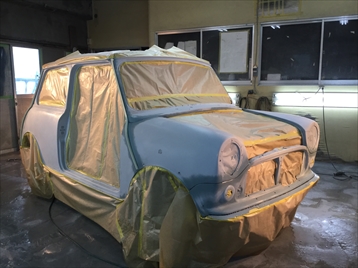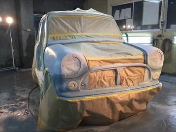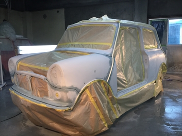 下処理が全て完了し、サフェサー作業! 綺麗に仕上がってますね〜 |