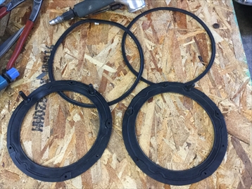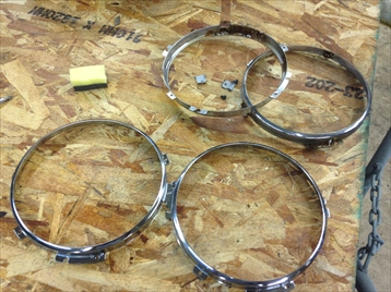 ヘッドライトのラバーシール、IN,OUTリングもサビサビなので交換です ラバーシールは、幅が広すぎてカッコ悪いのでカットしてからとりつけます リングも錆びない様にモール用のコーティングをしてから取り付けてます |