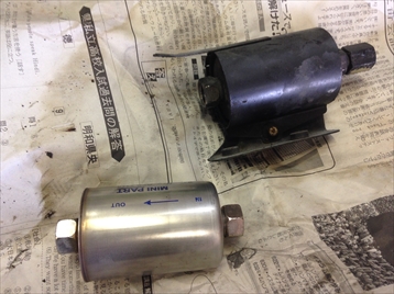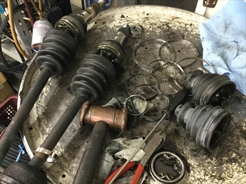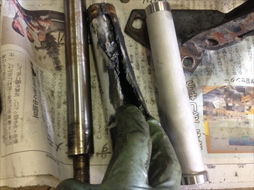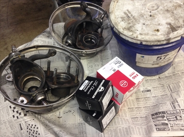 リヤラジアスアームのO/H! プラスチックのカラーはやはり割れちゃっていました ステンレス製に交換です!これ最高!! |