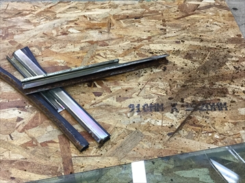 ドアガラスのレールサポートも交換です!いつもですね ドアの中はWAXOYLで防錆して組み付けます! |