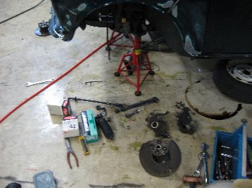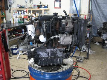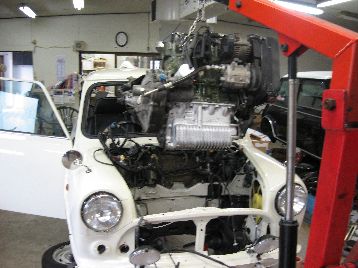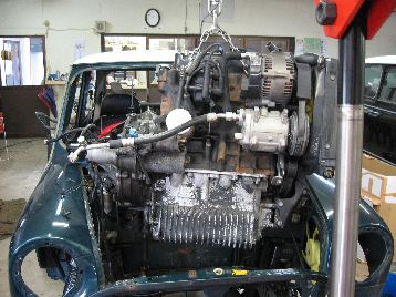 ガラス、その他も外しペイントの準備をしエンジンを降ろします |