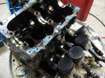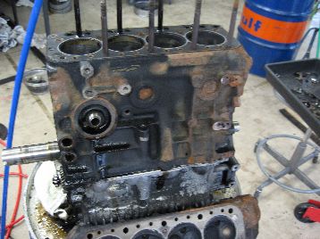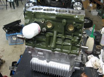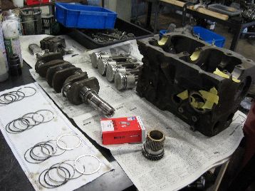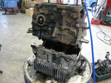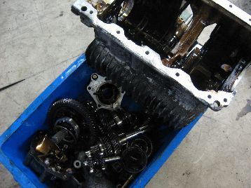 エンジンブロックの組み付けです 洗浄はエンジン、ミッションともにいつもに増して苦労しました |