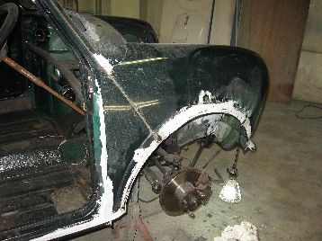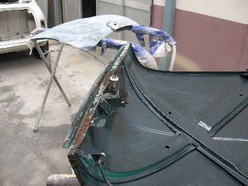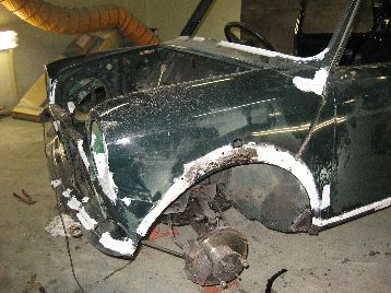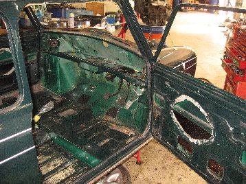 板金作業を進めています 右ドアは錆びがひどく、USED品で交換です |