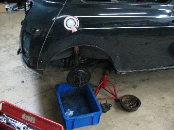 足回りを先に作業します リヤです ハブ、ブレーキ廻り |