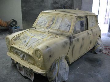 板金、補修が終わり、サフェーサーが入りました |
