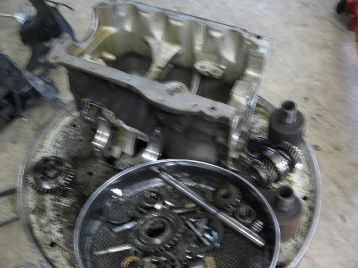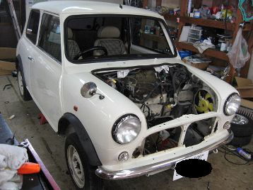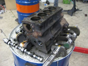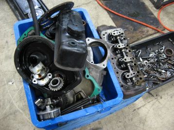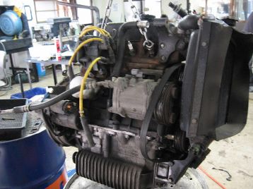エンジン、ミッションに入ります 降ろしたエンジン、ミッションをバラします |