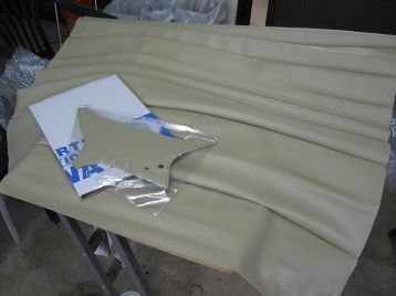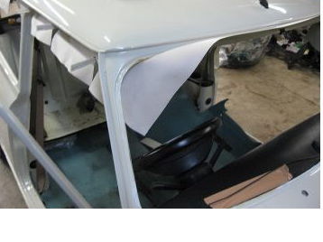 天張りの取り付けに入ります オーナーさんのこだわりで、メイフェアのシートの色です |