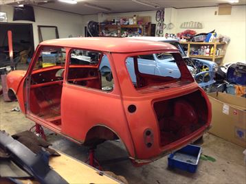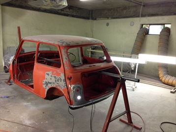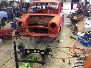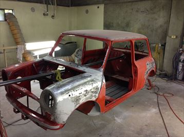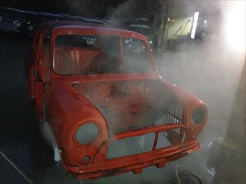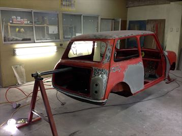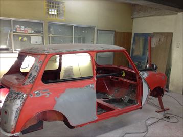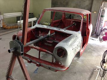 | いよいよ板金作業の開始です 徹底的に補修、錆処理、防錆処理を行います 年式にしては良いコンディションですが、やはりよくある所は、当然錆が出ていますし穴も空いています ここまでしなくても良い車両はありますが、だからといって錆びたからと言って捨ててしまう訳には行きません 1人なので出来る数は多くありませんが、一台でもミニが処分されない様に、減らない様にやって行きたいと思っています、徹底的に錆と戦います 大満足の台車は出来たのですが、床の補修がやりにくい・・・ |