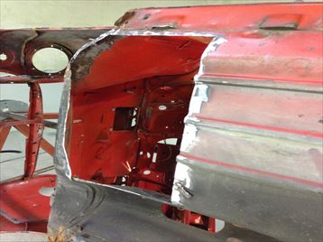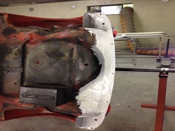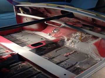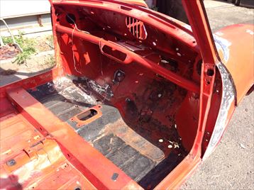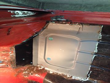 | 床の錆の修理に入ります 錆びた部分は取り除き、リペアーパネルを取り付けて行きます この辺りも錆の出やすい場所です |