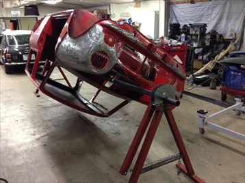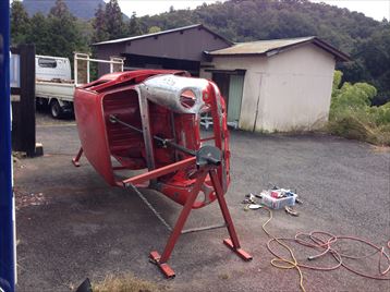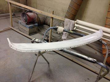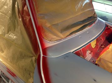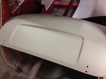 | 板金作業が終わり、外装にサフェーサーを入れ下地の完成! |