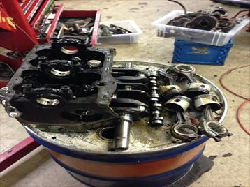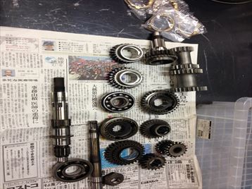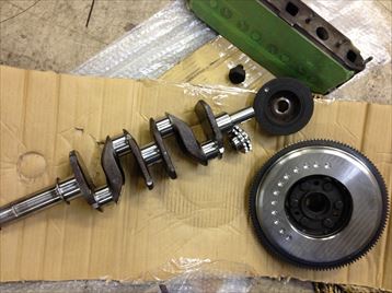 | エンジンの組み付けに入ります フラットピストンを用意しました クランクシャフトは軽量フライホイ−ルと共にAssyでFULLダイナミックバランス! |