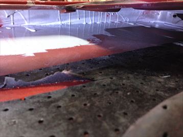 | フロアーも錆止めをペイントし、下地の完成! 錆びやすいパネルの継ぎ目にはシーラー処理しました |