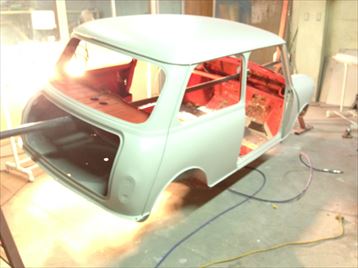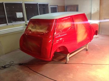 | ルーフもペイントが終わり塗装が完了です い〜い〜カッコイイ! 部品が付くともっと良くなりますね 気合入れるのもいいけど、ちょっと入りすぎか? 自分で満足いくまでやってしまう性格なので・・・ オーナーさんに喜んで長く乗っていただけるなら、それで良し! その分お待たせしてしまうのは、お許しを(謝) |