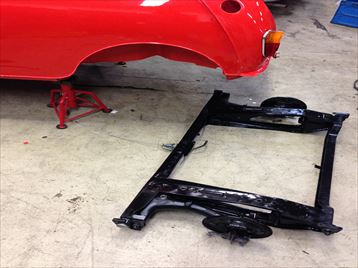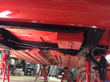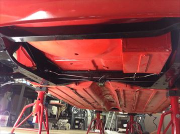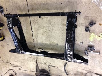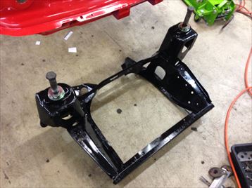 | フロントサブフレームもペイントしリジットマウントを使って取り付けして行きます 取り付けしました フロアーには補強でプレートを作り取り付けしました 下回りもビカビカです! |