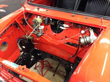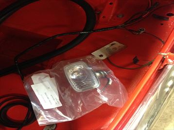 | トランク周りを組み付けして行きます リバースランプは英国MOSS製の物を使いました ガラスレンズで見た目もGOOD! フューエルポンプはNISMOの電磁ポンプを使います トランクケーブルなどの小物は交換します |
