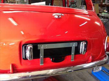 | ライセンスプレート、スイッチパネルは新品なのですが、元々の下処理処理、ペイントが悪くすぐ錆ますので、一度剥がしてリペイントしました ライセンスランプも交換、組み付け完了! |