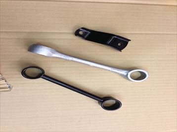 | バングリルの取り付け FRPの物が無く、鉄の物と思ったのですが これ、大きいのね じぇ、じぇ、じぇ! どうやって付けるか思案中です(汗 |